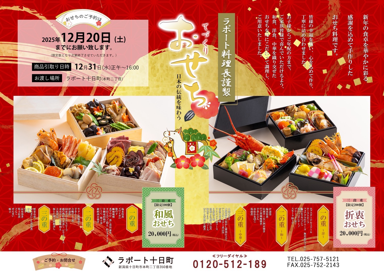 ラポートのおせち 2025.10.17 投稿日 10月 17, 2025 著者 nishino カテゴリー おせち ラポートのおせち お陰様で毎年完売のラポートの”おせち”。和洋中の料理人が食材と味にこだわり心を込めて丁寧に詰め合わせた本格おせち料理です。お子様からご年配の方まで、ご家族皆様で是非ご賞味ください。ご予約お問い合わせお待ちしております! お陰様で毎年完売のラポートの”おせち”。和洋中の料理人が食材と味にこだわり心を込めて丁寧に詰め合わせた本格おせち料理です。お子様からご年配の方まで、ご家族皆様で是非ご賞味ください。ご予約お問い合わせお待ちしております! お問い合わせはこちらから LINEで問い合わせる 電話で問い合わせる この記事を書いた人 nishino 記事一覧